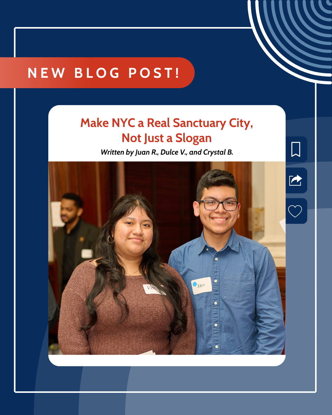 By Juan R., Dulce V., and Crystal B. New York City says it is a “sanctuary city,” but that promise does not mean much if federal immigration agents can still act in secret and local officials do not enforce the rules. For a lot of immigrant families, the fear is simple: a regular day—going to… Continue reading Make NYC a Real Sanctuary City, Not Just a Slogan